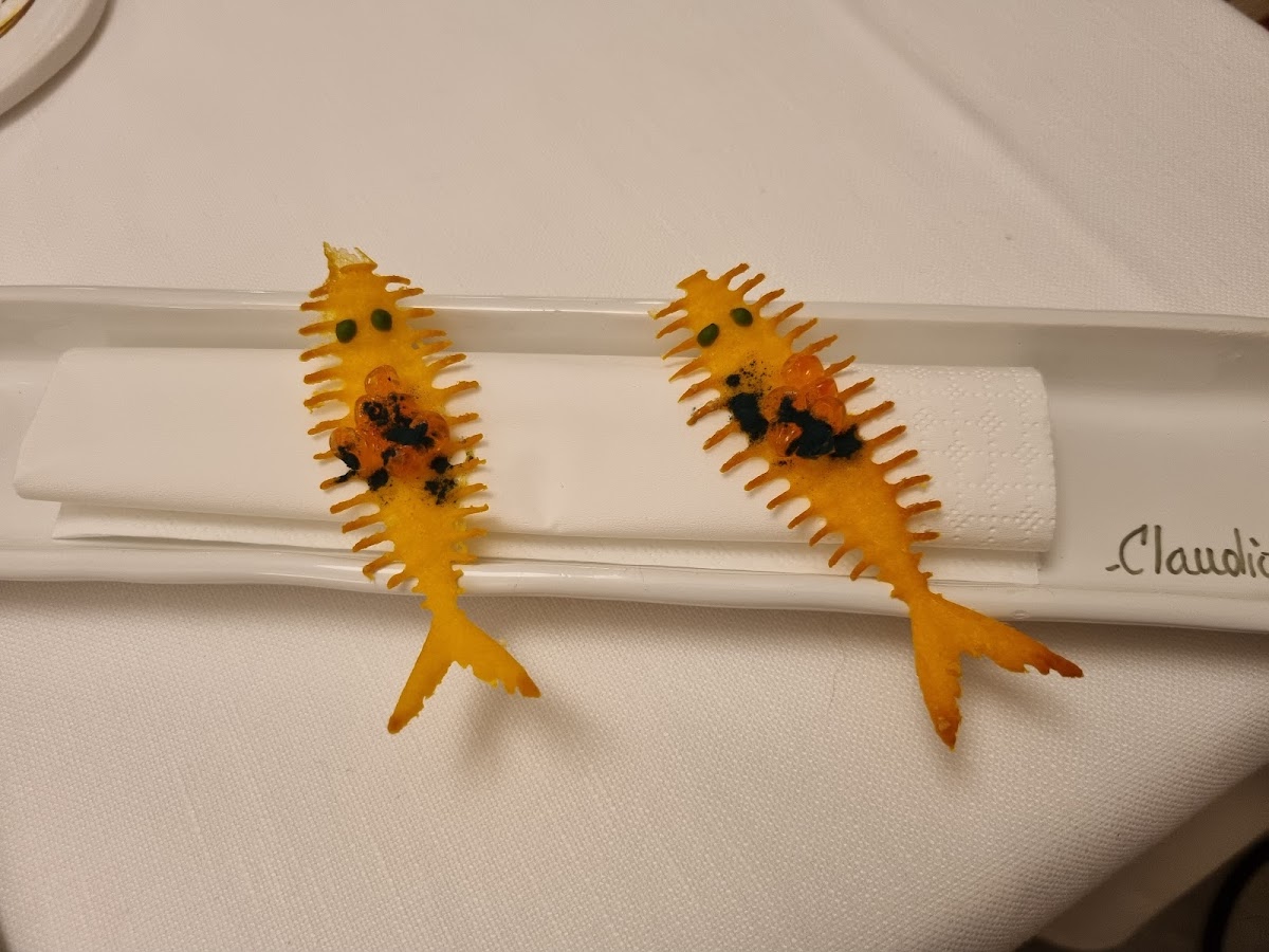 The culinary journey at Claudio Ristorante often features an inspiring blend of flavors—intriguingly, some dishes infuse Puglian ingredients into traditional Emilia recipes, showcasing the chef's creativity as seen in the review from Stefania Setti. The presentation is artful, and the balance of flavors is commendable. Signature dishes, such as the perfectly cooked cappesante (scallops) and ricciola (Amberjack), demonstrate the kitchen's commitment to excellence, praised by guests like Santa Agosti. To top it all off, the homemade cinnamon and blackberry gelato adds an unexpected yet delightful finish to the meal, leaving you with a sense of satisfaction.